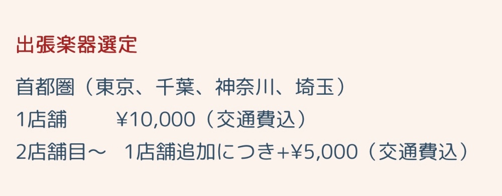 その代わり、当教室では公平に選んでいただけるよう楽器選定料を頂戴する形で、生徒様ご希望の楽器店に同行することも多いです。